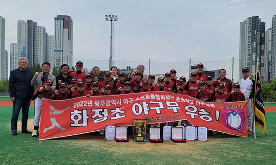 광주화정초등학교 야구부가 21일 올해 두번째 대회인 ‘2022 광주시야구소프트볼협회장기 초등학교 야구대회’에 참가해 우승의 기쁨을 만끽했다.
