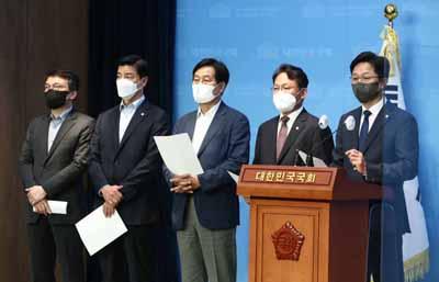 이날 회견에는 민주당 강병원, 김의겸, 김회재, 남인순, 신동근, 이해식, 최강욱 의원과 정의당 배진교 의원이 이름을 올렸다.