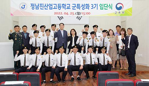 전남도 최초의 군(軍)특성화 고교인 정남진산업고등학교가 육군 기갑조종분야 3학년 학생 17명을 대상으로 25일 입단식 행사를 개최했다.