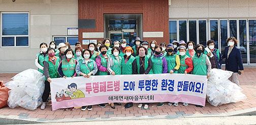 무안군 해제면 새마을부녀회는 최근 투명 페트병 분리 배출 조기 정착과 홍보를 위해 투명 페트병 모으기 활동을 펼쳤다.