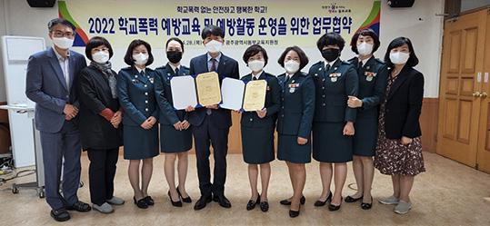광주동부교육지원청이 28일 ‘2022 학교폭력 예방교육 및 예방활동 운영을 위한 업무협약식’을 가졌다.