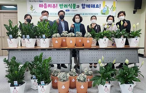이날 나눔 행사를 통해 전달된 반려 식물은 수명이 길고 실내에서 가꾸기 쉬운 금전수, 실내공기 정화식물인 스파트필름, 복랑 등을 선택해 식물 가꾸기를 통한 마음 치유 및 심리·정서적 안정은 물론 공기정화, 습도조절 등 주거환경 개선의 취지도 함께 담았다.