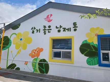 순천시 남제동은 2023순천만국제정원박람회를 대비하고 생태도시 이미지에 걸맞게 인제C지구에 담벼락과 경로당에 식물벽화를 완성했다.