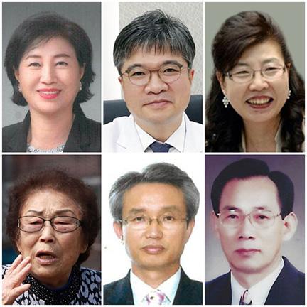 광주시의 명예를 드높이고 지역 발전에 기여한 시민 6명이 광주시 시민대상 수상자로 선정됐다. 윗줄 맨 왼쪽부터 시계방향으로 사회봉사 부분 임성자 (재)골드클래스문화재단 이사장, 학술 부문 안영근 전남대병원장, 문화예술 부문 김유정 광주여성필하모닉오케스트라 대표, 체육 부문 김정록 광주시태권도협회 고문, 지역경제진흥 부문 최석 ㈜유탑엔지니어링 회장, 특별상 양금덕 할머니. /광주시 제공 2022.05.16