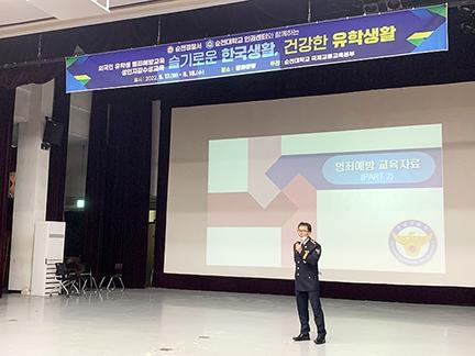 순천경찰서는 지난 17일 순천대학교 문화강당에서 외국인 유학생들이 참여하는 범죄예방교육을 실시했다.