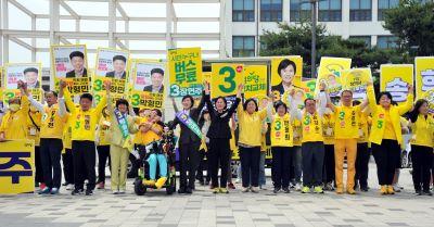 앞서 진보당 선대위도 같은 자리에서 출정식을 갖고 \"압도적으로 승리해 30년 묵은 광주정치의 판을 바꾸는 정치 혁명의 신호탄을 쏘아올리겠다\"며 \"진보당이 광주시의회 원내 도전권을 가질 수 있도록 지역민들이 열렬히 지지해달라\"고 말했다.