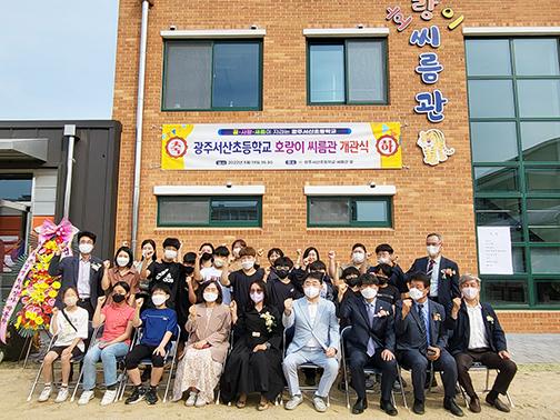 광주서산초등학교가 지난 19일 씨름부의 훈련 및 휴게공간과 일반 학생들의 다양한 체육활동 공간으로 활용될 ‘호랑이 씨름관’ 개관식을 개최했다.