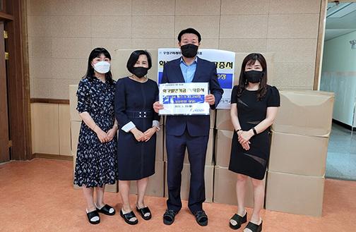 기부 받은 마스크는 교직원과 전교생에게 배부할 예정이며, 학교 일상 회복 추진 방안에 따라 모든 교육활동을 정상화하고 교육회복에 집중하는 시점에서 학생들의 방역 및 감염병 예방에 많은 도움이 될 것이다.