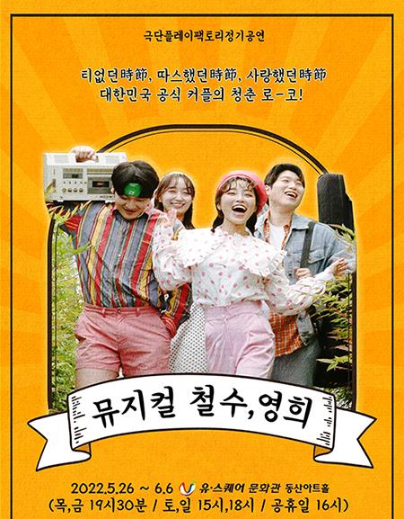 플레이팩토리는 복고 로맨스 코미디 뮤지컬 \'철수, 영희\'를 26일부터 다음달 6일까지 유·스퀘어문화관 동산아트홀에서 공연한다고 25일 밝혔다.