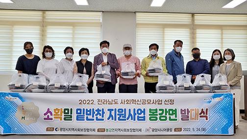 소확밀 밑반찬 지원사업은 봉강면지역사회보장협의체 위원과 봉강면 맞춤형복지팀 직원들이 월 2회 밑반찬 배달을 통해 정기적으로 안부를 확인하는 민·관 협력사업으로 광양시지역사회보장협의체 공모사업 지원금과 봉강면협의체 지정기탁금으로 진행되고 있다.