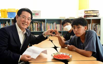 김영록 더불어민주당 전남지사 후보가 가정 형편이 어려운 중학생의 꿈과 희망을 응원했다.