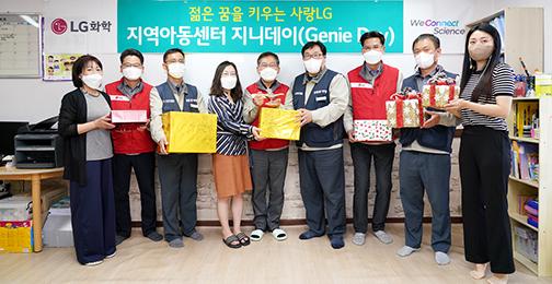LG화학 여수공장(주재임원 윤명훈)은 가정의 달을 맞아 지역아동센터 청소년들의 필요 물품을 지원하는 \'지니데이\' (Genie Day)행사를 가졌다고 29일 밝혔다.
