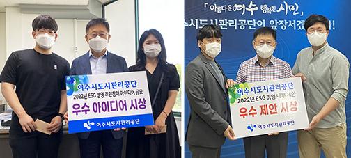 여수시도시관리공단은 주민과 내부직원의 경영 참여와 혁신적이고 실현 가능한 ESG경영 과제를 발굴하고자 실시한 ‘2022년 ESG경영 내부 제안 및 주민참여 아이디어 공모전’에서 우수 아이디어를 각각 2건씩 선정해 시상식을 개최했다고 밝혔다.