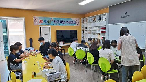 이날 ‘토닥토닥 친구사랑 우정캠프’는 ▲친구와 함께 하는 우정을 잡아라 이벤트 ▲심신을 치유하고 스트레스를 해소하는 천연향수, 디퓨저 등 아로마체험 ▲친구와 함께 하는 놀이 체험 등 친구들과 소통하고 어울릴 수 있는 다양한 프로그램으로 운영했다.