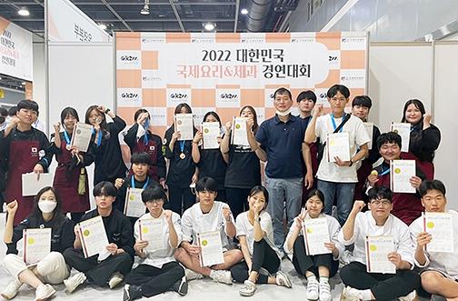최근 서울 양재동 AT센터에서 열린 2022 대한민국 국제요리&제과 경연대회 라이브 전시 부문에 참가한 김민철(1년)·이운혁(1년) 팀이 금상을 받았다.