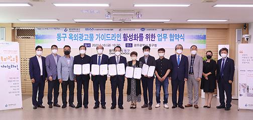 이번 협약은 올해를 ‘옥외광고물 정비’ 원년으로 삼고 그 일환으로 광주 5개 자치구 최초로 수립한 ‘동구 옥외광고물 가이드라인’의 성공적인 정착과 활성화를 위해 마련됐다.