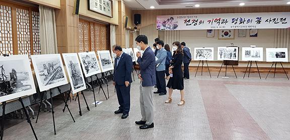 광주시교육청은 14일 본청 대회의실에서 6·25전쟁 72주년 기념 ‘전쟁의 기억과 평화의 꿈’ 사진전을 열었다. 장휘국 교육감을 비롯한 교육청 간부와 직원 200여 명이 이날 사진전을 관람했다.