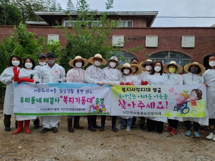 순천시 낙안면 마중물보장협의체(위원장 이삼열)와 우리동네 복지기동대(대장 황규경)는 지난 8일 이곡마을에 사는 100세 노인가구에 집청소, 방역 등 주거환경 개선사업을 했다고 밝혔다.