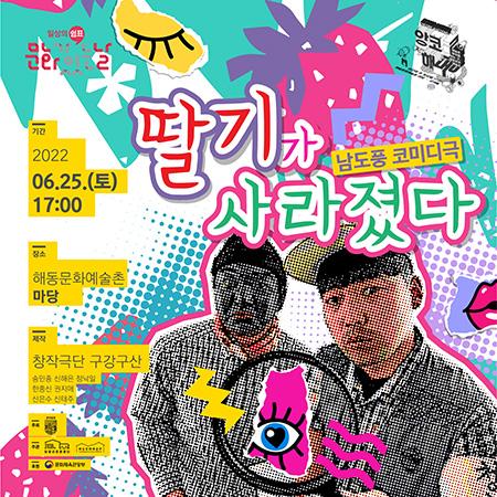 이번에 진행되는 ‘딸기가 사라졌다!’ 공연은 남도풍 코미디극으로 6월 25일 토요일 오후 5시 해동문화예술촌 마당에서 열리며, 창작극단 ‘구강구산’이 무대를 펼친다.