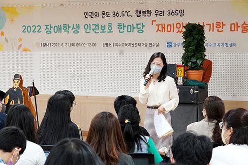 광주시교육청이 21일 특수교육대상자를 대상으로 시교육청 특수교육지원센터및 학교시설지원단에서 장애학생 인권보호 한마당 행사를 개최했다.