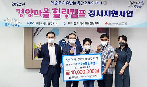 김영순 위원장은 “주민들의 정서적 안정을 위해 기부금을 후원해 주신 한국마사회 광주지사에 감사드린다”면서 “이번 사업을 통해 마음 건강의 사각지대에 놓여있는 돌봄 1인 가구의 심리적 안정감을 회복하고 사회적 고립과 배제를 해소해 다 함께 행복한 계림1동을 만들어나가겠다”고 말했다.