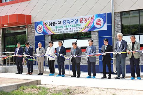 2021년 9월부터 총사업비 9억1000만원이 투입된 이번 사업으로 여남중고는 연 면적 400㎡의 부지에 동아리실과 문화·스포츠교실 등의 특별교실과 외부계단 등을 갖춘 지상 2층의 건물을 준공하게 됐다.