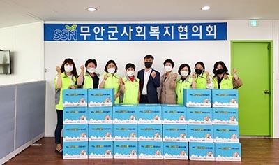 무안군사회복지협의회(회장 나민희) 좋은이웃들 봉사단은 지난 27일 MG새마을금고가 후원한 \'온(溫)택트 지원세트\' 나눔사업을 진행했다.