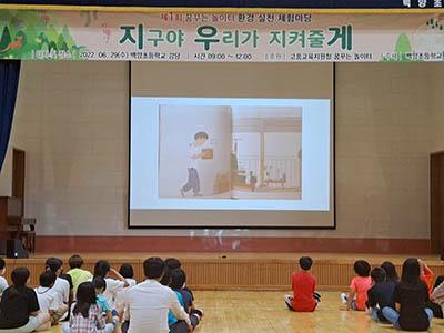 두 학교는 작은학교 특성화프로그램 공동운영학교로 마을학교와 함께 나의 생활습관과 소비 습관이 환경에 미치는 영향을 살펴보고자 백양초 강당에서 다양한 환경 실천 체험마당을 진행했다.