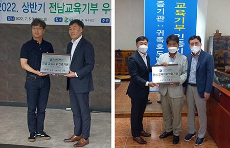 전남도교육청이 5일 2022 상반기 전남교육기부 우수기관에 선정된 귀족호도박물관(장흥군 소재)과 GS칼텍스(주)여수공장을 방문해 인증패 전수식을 가졌다.
