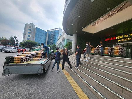 이번 나눔에서도 ‘경기가 어려울 때일수록 나눔은 더욱 커져야 한다’는 말씀과 함께 무더위에 힘든 어르신, 장애인 등 취약계층을 위해 써달라며 20㎏들이 백미 200포(1200만 원 상당)를 기부했다.