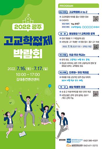 광주시교육청이 오는 16~17일 이틀 동안 김대중컨벤션센터에서 초·중·고 학생 및 학부모를 대상으로 하는 ‘2022 광주 고교학점제 박람회’를 개최한다. ‘2023학년도 대입 대비 광주 진로진학박람회’도 함께 진행한다.