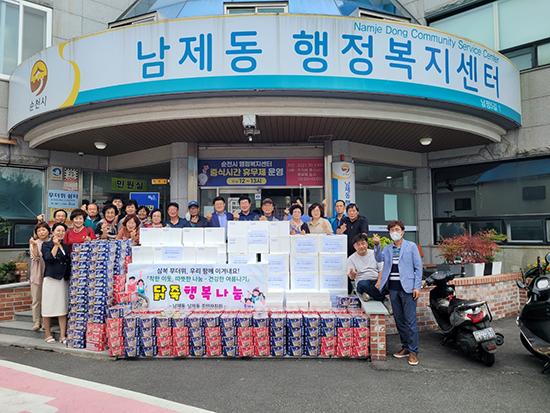 순천시 남제동 주민자치회는 초복을 앞둔 지난 13일 무더위로 힘들고 외롭게 지내는 독거노인 100명과 지역 내 경로당 14곳에 ‘착한 이웃, 따뜻한 나눔 - 건강한 여름나기’삼계탕 재료 나눔 행사를 가졌다고 밝혔다.