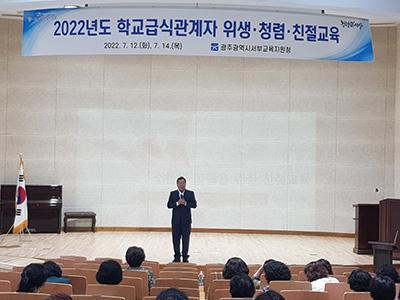 광주서부교육지원청이 12일과 14일 이틀에 걸쳐 광주학교시설지원단 대강당에서 영양교사, 영양사, 조리사 등 학교급식관계자 400여 명을 대상으로 ‘2022년도 학교급식관계자 교육’을 실시했다.