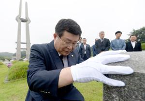 설 의원은 앞서 묘역 입구 민주의문 방명록에 \'영령들이여! 민주당을 좋은 당으로 지켜 주소서\'라고 적었다.