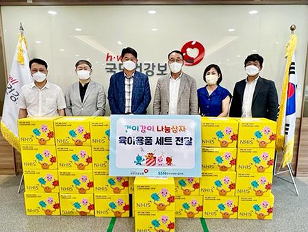 건보공단 무안신안지사 봉사단원은 19일 신안군 가족센터(센터장 신선희)와 함께 저소득 가정에 10만원 상당의 육아용품 세트 건이강이 육아용품 상자를 30개를 기증하는 시간을 가졌다.