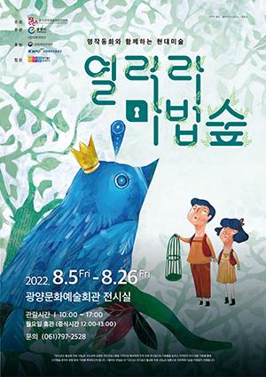 전시회는 동화 속 숲을 주제로 한 동화 일러스트 작품과 현대미술 작가들의 입체 회화, 인터렉티브 미디어 아트 등 다양한 작품 48점을 선보인다.