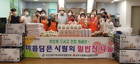 지산2동 지사협은 이번 행사에서 직접 담근 깍두기가 포함된 삼계탕 식사 세트와 함께 시원하게 여름을 날 수 있는 선풍기와 여름 이불, 방역 마스크 등을 전달했다.