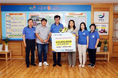 장흥군은 지난 22일 (사)함께하는사랑밭에서 5000만원의 후원금을 기탁했다고 밝혔다.