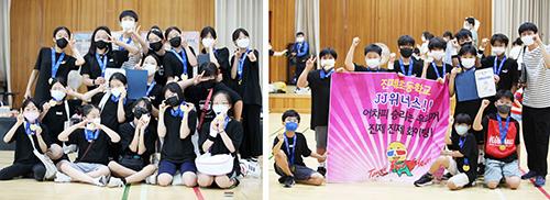 이날 경기는 참가한 모든 팀끼리 맞붙는 풀리그 방식으로 진행했다. 진제초 여자부 솔빛스타즈는 2승1패, 남자부 JJ위너스는 4승1패의 성적을 거두며 동반 우승을 차지했다. 또 진제초 최백강(6학년), 강주은(6학년)선수가 최우수 선수상을, 송호엽 감독(교사)가 최우수지도자상을 수상하며 겹경사를 누렸다.