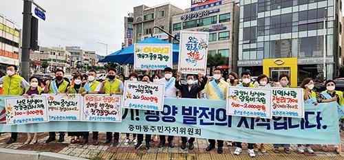 광양시 중마동은 지난 25일 중마동 컨테이너부두 사거리에서 중마동 지역 15개 사회단체가 동참한 가운데 지역 실거주 미전입 세대에 대한 전입 유도와 ‘감동시대 따뜻한 광양’을 슬로건으로 내걸고, ‘지속 가능한 글로벌 도시 실현’을 위해 대대적인 캠페인을 실시했다.
