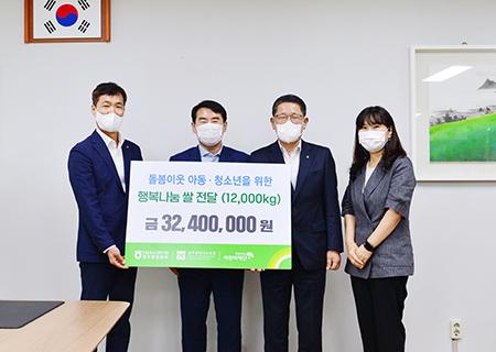 특히 NH농협에서는 돌봄세대 가정을 후원하고 지역농가의 쌀소비 촉진을 돕기 위해 이번 사업에 동참했다. 대상으로 선정된 관내 초·중·특수학교 300명 가정으로 행복을 나눌 쌀(각 40kg씩)을 개별 배송할 예정이다.