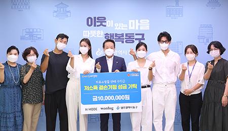 광주 동구는 지난 3일 ㈜에이치모드와 ㈜원로그에서 온라인 의류 판매 수익금 1000만 원을 기탁했다고 밝혔다.