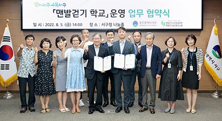 광주 서구가 2045 탄소중립선도도시 서구 실현을 위해 지난 4일 서구마을네트워크 ‘이락’과 감(減)탄 마을만들기 업무 협약식을 가졌다.