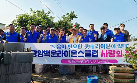 한편, 광양백운라이온스클럽은 앞으로도 지역 취약계층을 위해 9월부터 벌초 대행, 주거환경 개선 동참, 헌혈, 의료지원(안과, 당뇨, 관절) 등 다양한 봉사활동을 추진할 계획이다.