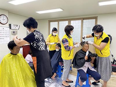 올해 3번째로 실시한 이·미용 봉사는 지역사회보장협의체 위원으로 활동 중인 이순영 위원(前미용실 운영)과 협의체 위원들의 재능기부로 이뤄졌으며, 코로나19 확산 방지를 위해 철저한 방역수칙 준수 하에 마을주민 15명의 머리손질을 해드렸다.