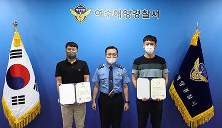 박제수 여수해양경찰서장은 이날 오후 김씨와 송씨에게 감사장을 수여했다.