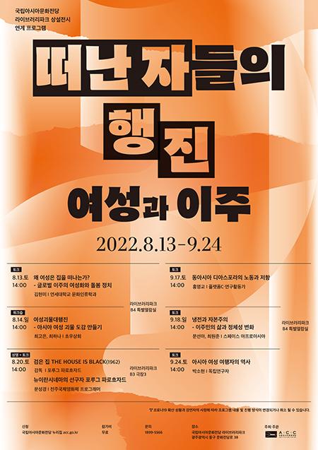 아시아 여성과 이주에 관한 총체적 관점을 제시하는 강연, 영화 상영 등 국립아시아문화전당 상설 전시 이해를 돕는 프로그램이 잇따라 펼쳐진다.