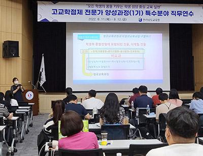 고교학점제 전문가 양성과정은 미래사회의 변화에 따른 고교 교육의 방향, 고교학점제 도입 대비 학생의 진로·적성 맞춤형 학교 교육과정 편성·운영, 학생의 학업 설계·관리 등 교원의 지도 역량 강화를 위해 마련됐다.
