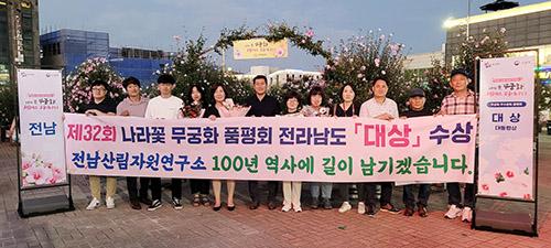 전남도산림자원연구소는 산림청 주관으로 15일까지 6일 간 충남 보령에서 열린 \'제32회 나라꽃 무궁화 전국 축제, 무궁화 우수분화 품평회\'에서 대통령상인 대상을 차지했다고 16일 밝혔다.