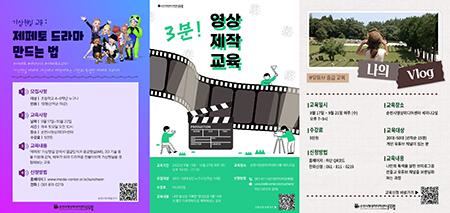 ‘3분 영상제작 교육’과 ‘유튜브 중급 교육 : 나의 vlog’은 20~50대 성인이 대상이다. 일상을 기록한 영상을 3분 내외의 짧은 다큐멘터리로 만드는 법과 나만의 특색을 살린 브이로그를 만들고 유튜브 채널을 브랜딩 하는 법을 배운다.